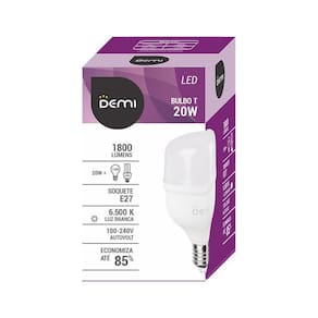 Lâmpada Led Yt Bulbo 20w E27 6500k Demi 10169 Lâmpada LED Yt Bulbo 20W E27 6500K Demi 10169 - Lâmpada LED Yt Bulbo 20W E27 6500K Demi 10169 Características Gerais do Produto: - Modelo: 10169 - Marca: Demi - Cor: Branca - Eficiência Luminosa: 90lm/W - Temperatura da Cor: 6500K - Composição: Policarbonato e alumínio. - Tensão: Bivolt - Especificações: Economia de até 85% de energia - Potência: 20W - Fluxo Luminoso: 1800lm - Frequência: 50/60Hz - Garantia direto com o Fabricante: 3 Meses Contra Defeitos de Fabricação Garantia: - 03 meses de garantia direto com o fabricante
