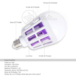 Lâmpada Luz Led Branco 15w Atrai Choque Mosquito Insetos Pernilongo Moscas