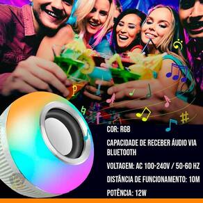 - 50hz-60hz - led: 6w - potência máxima: 12w - potência da caixa de som: 3w - frequência de resposta: 135hz - 15khz - versão bluetooth 3. 0 - alcance de rádio: 10 metros - base da tampa: e27 ou b22 - modo rgb