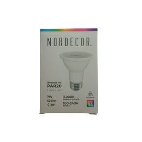 A Lâmpada PAR20 LED Nordecor Soft é ideal para quem busca alta qualidade de iluminação e fidelidade de cor. Com 7W de potência e fluxo luminoso de 525 lúmens, proporciona luz suave e eficiente com temperatura de cor de 2700K (branco quente), perfeita para criar ambientes aconchegantes.