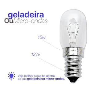 A Lâmpada 127V 15W para Geladeira ou Micro-ondas foi projetada para suportar baixas temperaturas na geladeira e altas temperaturas no forno, garantindo durabilidade e eficiência. Com alta qualidade de iluminação, ela proporciona a claridade necessária para você enxergar tudo com precisão.