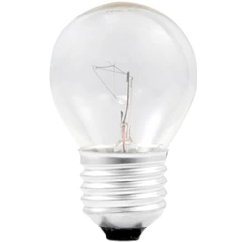 - Bulbo de vidro com filamento em tungstênio e soquete de material não ferroso.
