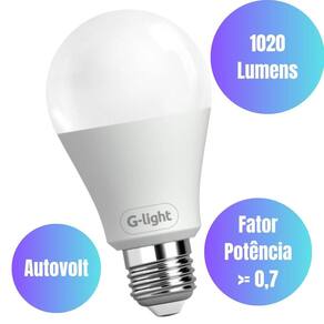 Informações adicionais: - Marca: G-Light - Modelo: A60 - Cor: Branco - Medidas do produto A x L : 10,8 x 6 cm - Peso do produto: 33 gramas