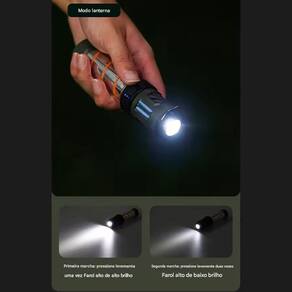 Lâmpada Repelente oferece cinco níveis de brilho ajustáveis, incluindo um modo de luz frontal de longo alcance (alto a baixo) e um modo de luz atmosférica (alto a baixo com uma opção intermitente). Isso permite a iluminação personalizada para atender diferentes situações.