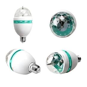 Especificações Técnicas: - Modelo: Lâmpada LED E27 com sistema rotativo em globo de cristal; - Cores: RGB Colorido; - Dimensões: 14 cm x 8,0 cm; - Potência: 3W; - Material: Plástico; - Base: E27; - Voltagem: AC 100-240V bivolt .