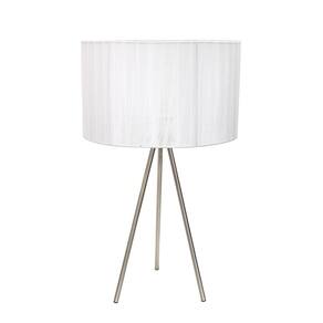 Simple Designs LT2006-WHT Candeeiro de mesa tripé de níquel escovado com sombra transparente de seda plissada, branco