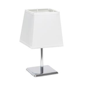 Simple Designs LT2062-WHT Mini candeeiro de mesa cromado com sombra de tecido império quadrado, branco