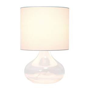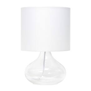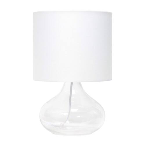 Simple Designs LT2063-CLW Candeeiro de mesa de cabeceira de vidro pequeno com cortina de tecido branco, transparente