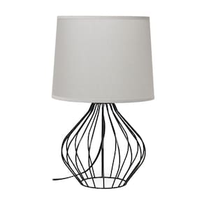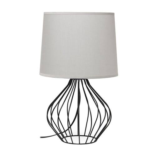 Simple Designs LT2086-GOB Candeeiro de mesa de cabeceira oco geométrico com fio, base preta com sombra cinza
