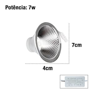 #CARACTERÍSTICA -Modelo: RL-AR70-BF -Potência: 7w -Temperatura: 6500K -Dimerizável: Não -Fluxo Luminoso: 700 Lumens -Ângulo de Abertura: 24 Graus -IRC: >80 -Tensão: AC85-265V -Frequência Nominal: 50/60Hz -Fator de Potência: >0.5 -Corrente nominal: 127V-21mA/ 200V- 10,5mA -Índice de proteção: IP40 -Temperatura de operação: -20 a 40 Graus Celsius -Vida útil: L70 (50.000 horas) -Peso 35g Marca: RL LIGHTING