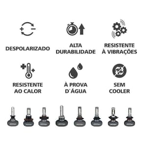 Descrição par lâmpadas ultra led h3 6000k 10000lm efeito xênon aplicação farol carro com reator: Toda a qualidade e excelência do ultra led à sua disposição neste par de lâmpadas no encaixe h3, e mais ainda, pois este modelo conta com led chip de última geração e moderna tecnologia de dissipação de calor que dispensa o uso de cooler. Própria para carros que operam com 9/32v bivolt este par lâmpada ultra led possui temperatura de cor de 6000k, que são nada mais nada menos do que 10000 lúmens no par. Assim a luz emitida fica na faixa de tonalidade branca, fornecendo uma iluminação mais eficiente e bonita. Com acabamento galvanizado e corpo em liga de alumínio, você pode instalar e ficar despreocupado, pois o ultra led é resistente ao calor, vibrações e até mesmo à umidade, graças ao seu alto nível de impermeabilidade. Especificação técnica: - encaixe h3 - temperatura de cor: 6000k - eficiência de 10000 lúmens no par - tonalidade branca - potência: 25w (cada) - voltagem: 9/32v bivolt - quantidade de 2 leds por lâmpada - sem cooler - maior vida útil - acabamento galvanizado e cromado - corpo de liga de alumínio - led chip de última geração - dissipador de calor em alumínio de aviação - sem drive externo, basta plugar - dura até 8x mais - despolarizado - resistente a vibrações - resistente ao calor - proporciona melhora na visualização de placas e sinalizações - nano design à prova dágua- nível de impermeabilidade ip65 - reator embutido Conteúdo da embalagem: - 02 lâmpadas ultra led com reator embutido Atenção: de acordo com a lei federal nº 11.291, a exposição prolongada a ruídos superiores a 85 db pode causar danos ao sistema auditivo. Importante: Garantia de 1 ano. Recomendamos que a instalação seja feita por profissional especializado e não se responsabiliza pelo mau uso do produto.
