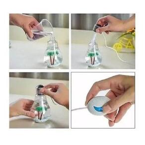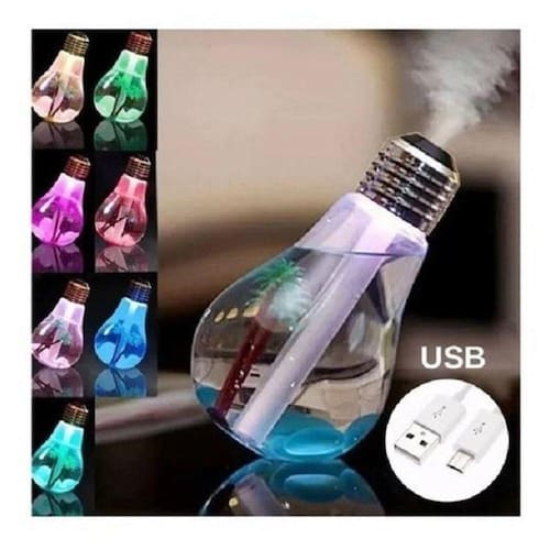 Pensou em utilidades fale com a Plus Adaptadores Características: Umidificador Aromatizador de Ar e Luminária em formato de Lâmpada, com decoração interna. Conexão padrão Usb. Você pode utilizar em seu Notebook/PC/Power Bank etc. . Modo de Uso: - Apos colocar as pedras, coqueiro e água 400ml dentro da lâmpada, feche bem e ligue numa conexão USB ou tomada será necessário adaptador . - Para ligar o umidificador, aperte o botão uma vez. - Para desligar desligar o umidificador aperte o botão uma vez. - Para ligar e/ou desligar os LED aperte o botão e pressione até que apague/acenda. . Informações Técnicas: - Voltagem: 5v - Corrente Elétrica: 300ma - 400ma - Watts: 2w - Capacidade de Água: 400ml - Capacidade de Névoa: 25ml/h - Tempo: 6h - Tamanhos: 153mm x 88mm x 88mm - Peso: 240g - Material: ABS + PET + PP - Cabo USB: 90cm . Incluso No Pacote: - 01 Filtros de 14cm - 01 Saco com Pedras e 01 coqueiro - 01 Lâmpada De Plastico - 01 Base Umidificadora Com Ligação USB