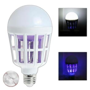 - Construída com chips de LED que emitem luz azul de raios ultravioleta atraente para mosquitos, eliminados por um choque elétrico. - Área de cobertura ampla e eficaz. - Design 2 em 1, permitindo uso como iluminação ou exterminador de insetos. - Mais segura e prática em comparação com outros métodos de repelência a insetos. - Fácil de operar, adequada para uso interno ou externo em qualquer soquete padrão de lâmpada, ideal para varandas e jardins.