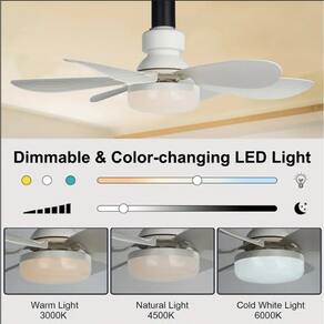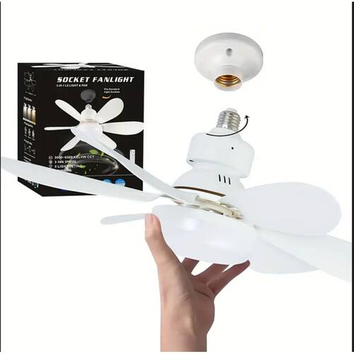 CARACTERÍSTICAS PRINCIPAIS: ? Multifuncional 2 em 1: Combina ventilador e lâmpada em um só dispositivo. ? Compatível com Bocal Comum: Fácil instalação, sem necessidade de adaptações. ? Controle Remoto Incluso: Para total comodidade na operação. ? Motor Sem Escova Super Silencioso: Operação estável, baixa emissão de ruído e longa vida útil. ? Pás Embutidas (6 Unidades): Duráveis, discretas e seguras, sem risco de contato direto. ? Material de Alta Qualidade: Estrutura em plástico resistente com acabamento sofisticado.