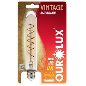 Lâmpada Vintage Led Tubo T185 Spiral Bivolt de 4 Watts E 2400k - 05322 - Ourolux Lâmpada Vintage Led Tubo T185 Spiral 4w Bivolts 2400k - 05322 - Ourolux Lâmpada Vintage Led Tubo T185 Spiral Bivolt de 4 Watts e 2400K - 05322 - OUROLUX Descrição: Com design antigo modernizado e baixo consumo de energia a linha Vintage Superled Ourolux tem lugar de destaque na decoração de diversos ambientes e pode ser utilizada em luminárias, pendentes, abajures ou em objetos de decoração ficando aparente. Uma ótima opção para quem busca design com tecnologia e qualidade.