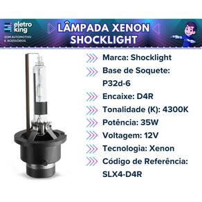 • Marca: Shocklight • Base de Soquete: P32d-6 • Encaixe: D4R • Tonalidade (K): 4300K • Potência: 35W • Voltagem: 12V • Tecnologia: Xenon • Luz de Alta Intensidade • Proporciona Maior Economia e Qualidade • Código de Referência: SLX4-D4R