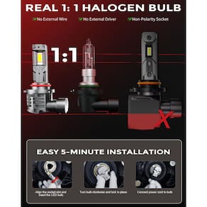 IMPORTANTE: Se for um produto elétrico, ele pode ser compatível com uma tomada de 110 volts. Se utilizado fora dos Estados Unidos, pode ser necessário um conversor de voltagem para garantir a operação adequada. Verifique se o produto que você está comprando é elétrico antes de considerar essas informações. Lâmpadas de neblina automotivas - [Visão adicional e mais ampla] As lâmpadas LED ZONBEAM 9005 2025 com saída de lúmen ultra-alto de 24.000 lm por grupo, em comparação com halogênio e luz branca fria de 6.000 k, iluminam todos os detalhes da pista à noite, tornando a condução noturna mais confortável e segura. - [Tamanho real 1:1] Design verdadeiro de lâmpada halógena 1:1, com a mesma interface e proporções das lâmpadas halógenas, sem base volumosa e fiação externa, 100% de passagem de instalação, design de encaixe direto sem polaridade. Nenhum conhecimento profissional é necessário, basta torcer as lâmpadas antigas e torcer as novas. Tudo terminará em 5 minutos. - [Padrão de luz perfeito]: as lâmpadas de neblina LED ZONBEAM adotam a mais recente tecnologia LED, padrão de luz halógena 1:1, 16 chips de LED, cada lâmpada torna o padrão de luz focado e uniforme. Sem manchas escuras e sem cegar os motoristas que se aproximam. - [60.000 horas de vida útil]: O tubo de cobre embutido e todo o corpo de alumínio de aviação retiram efetivamente o calor dos chips de LED para maximizar a vida útil e o desempenho das lâmpadas LED ZONBEAM 9005. Mesmo sendo usadas 12 horas por dia, as lâmpadas também podem durar mais de 10 anos. - [99,5% de compatibilidade com o veículo] O driver atualizado integrado e o sistema de decodificação Cabus de sexta geração tornam as lâmpadas LED ZONBEAM facilmente compatíveis com 99,5% dos veículos. Nota: Em alguns veículos, o sistema do computador pode ser sensível e exibir mensagens de erro ou sinais intermitentes. Para resolver esse problema, decodificadores adicionais são necessários. Deixe uma mensagem na Amazon para que possamos enviar os decodificadores diretamente.