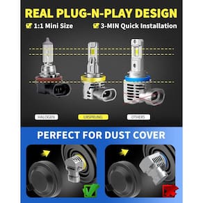 IMPORTANTE: Se for um produto elétrico, ele pode ser compatível com uma tomada de 110 volts. Se utilizado fora dos Estados Unidos, pode ser necessário um conversor de voltagem para garantir a operação adequada. Verifique se o produto que você está comprando é elétrico antes de considerar essas informações. Combinação de lâmpadas de neblina Ursprung H11 9005, 60000LM 900% mais brilhantes, lâmpadas de neblina reais 1:1 mini tamanho H9 H8 HB3 para esportes motorizados, prontas para Canbus Plug-N-Play, pacote com 4 - Brilho e clareza superiores: as lâmpadas de neblina Ursprung H11 9005 são equipadas com chips CSP de última geração e uma luz branca fria de 6500 K, oferecendo 900% mais brilho do que o padrão faróis de neblina. Esse aumento significativo na visibilidade garante uma experiência de direção mais segura, especialmente em condições de baixa visibilidade, como neblina ou chuva. - Instalação fácil: o H11 9005 atualizado pela Ursprung apresenta um design de tamanho pequeno 1:1 com uma base compacta e sem polaridade, garantindo uma instalação plug-and-play sem complicações. Nenhuma modificação é necessária e ele se encaixa perfeitamente na caixa de iluminação do seu veículo, economizando tempo e esforço. - Iluminação precisa e uniforme: projetadas com painéis duplos, essas lâmpadas oferecem um alinhamento de 1 mm que reflete o padrão de luz das lâmpadas halógenas. O resultado é um feixe uniformemente distribuído, livre de áreas escuras, garantindo máxima visibilidade e uma experiência de direção mais segura. - Construído para durar: com um design sem ventilador IP68 à prova d'água e à prova de poeira, o farol de neblina Ursprung H11 9005 foi projetado para suportar condições climáticas adversas. Com uma vida útil de até 70.000 horas, esses faróis de neblina oferecem durabilidade e confiabilidade, eliminando a necessidade de substituições constantes. - Compatibilidade perfeita: o sistema IC inteligente integrado das lâmpadas H11 9005 garante uma integração perfeita com 99% dos sistemas do veículo. Prontos para o CANbus e sem erros, eles funcionam perfeitamente com faróis de neblina e luzes diurnas, oferecendo um desempenho suave e sem interferências.