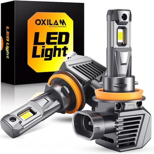- Desempenho super brilhante: as lâmpadas OXILAM H11/H8/H9 apresentam 12 chips de alta qualidade por lâmpada, fornecendo uma impressionante saída de luz de 30.000 lúmens. Esse brilho é surpreendentemente 800% maior do que as lâmpadas halógenas tradicionais, garantindo maior visibilidade para uma condução noturna mais segura