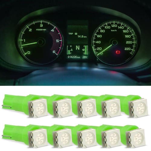 Kit 10 Lâmpadas Led Pinguinho T5 1 Led Verde Painel Carro