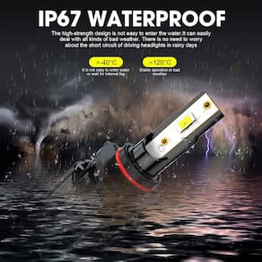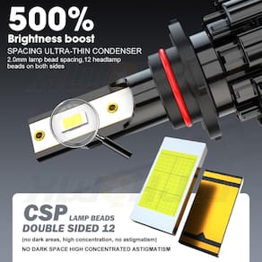 - Vida útil de até 60.000 horas - As lâmpadas 9012 5202 vêm com dissipador de calor de alumínio prensado a frio e ventilador de 12.000 rmp, fornecem um sistema de resfriamento altamente eficiente e confiável, prolongando a vida útil da lâmpada.