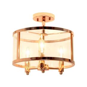 Elegant Designs FM1005-RGD Mediana de 13" con pantalla de hierro y vidrio, estilo tradicional farmhouse industrial, luminaria de techo semi empotrada redonda de 3 luces para dormitorio, recibidor y sala de estar, en color oro rosado. - DISEÑO TRADICIONAL: Esta lámpara presenta un acabado meticuloso en metal color oro rosado a lo largo del marco de la pantalla, rodeando paredes curvas de vidrio, junto con un dosel metálico a juego que ofrece un aspecto suave y elegante de arriba hacia abajo, colgando de manera segura del techo. - LUZ CERCANA AL TECHO: La iluminación de esta lámpara semi empotrada de 3 luces con voltaje de 120v proyecta luz en todas las direcciones y se refleja hermosamente en los paneles de vidrio. - TAMAÑO: Esta lámpara semi empotrada es de tamaño medio, perfecta para pasillos, salas, entradas, dormitorios, comedores, oficinas o salas de estar. - ENSAMBLAJE Y CABLEADO MÍNIMO REQUERIDO: Aunque la pantalla está ensamblada, deberá instalar y cablear el dosel al techo, además de conectar la pantalla al dosel antes de usar. Se incluye manual de instrucciones y herrajes para montaje. No incluye herramientas. Recomendamos asesoría profesional para cableado si no está seguro. - BOMBILLAS NO INCLUIDAS: Esta lámpara utiliza 3 bombillas equivalentes de 40 vatios tipo B10 con base candelabro E12, que no están incluidas pero se pueden encontrar fácilmente en ferreterías o en línea. Para un estilo vintage completo se recomienda bombilla Edison.