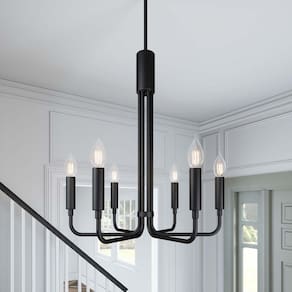 Lámpara de techo Modway Rekindle de 6 luces en negro. - Lámpara de techo de 6 luces - Construcción en metal de hierro - Base de techo con adaptador giratorio - Altura ajustable - Requiere 6 bombillas E12 de 60W (no incluidas)