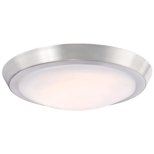 Lámpara de techo empotrada LED Westinghouse 6107300 de 28 cm (11 pulgadas), acabado en níquel cepillado con pantalla acrílica esmerilada. - Diseño de perfil bajo ideal para pasillos, cuartos de lavado o cualquier espacio pequeño. - Acabado en níquel cepillado elegante con pantalla acrílica esmerilada que combina con cualquier estilo de interior. - LED integrado de 20 vatios con brillo de 1400 lúmenes, equivalente a una bombilla incandescente de 75 vatios, regulable cuando se usa con un interruptor compatible. - Altura de 4.76 cm (1-7/8 pulgadas), diámetro de 28 cm (11 pulgadas), incluye instrucciones de instalación y hardware de montaje. - Garantía limitada de cinco años contra defectos de materiales y mano de obra, certificado ETL/cETL.