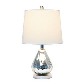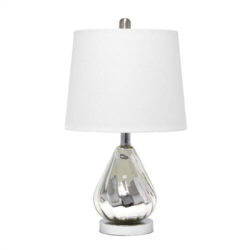 Lámpara de mesa Elegant Designs LT3319-WHT con base metálica de vidrio en cromo ondulado y pantalla blanca de tela. - Base metálica de vidrio - Pantalla blanca de tela - Interruptor giratorio de fácil acceso ubicado en el portalámparas - Usa 1 bombilla base tipo A de potencia equivalente a 60 W (no incluida) - Disponible en opciones de colores adicionales para la pantalla - Medidas de la lámpara: diámetro 30,5 cm x altura 52 cm