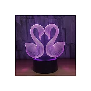 Luz nocturna LED 3D con diseño de doble cisne y 7 opciones de luz diferentes.