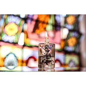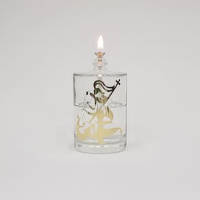 Faça sua oração e decore seu ambiente da melhor forma e qualidade. Lamparina São Jorge de vidro grosso ultra resistente para Fluido Velas Bistrot. Lamparina de vidro grosso ultra resistente para Fluido Bistrot. Pavio de vidro eterno, nunca precisa trocar. Altura da chama regulável. Não solta cheiro nem fumaça. Fluido atóxico e de baixa inflamabilidade, muito seguro NÃO INCLUSO Testado e aprovado por milhares de clientes.