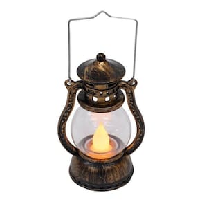 Luminária em forma da lamparina pequena com 12 cm de altura. Interior com enfeite em forma de 1 vela. Botão liga e desliga. Ao ligar, é como se a vela estivesse acesa. Funcionamento: 3 baterias LR44. Material: plástico Dimensões com a alça: 15cm de altura