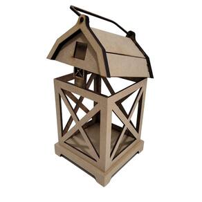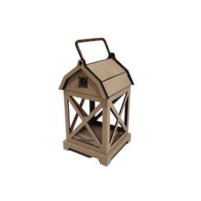 Suporte para Vela/ Castiçal/Lanterna / Luminária - em MDF modelo Celeiro com abertura de encaixe e alça;