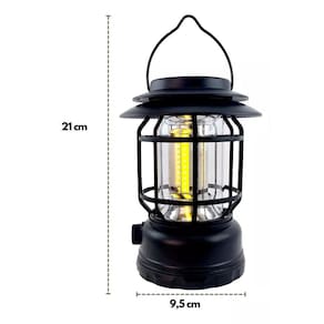 Lampião luminária Multiuso Led Recarregável Solar Ou Usb 5v :: DK Utilidades :: Apresenta: Lanterna Luminária Solar Led Recarregável Portátil Camping Pesca Barraca Acampamento Lampião Luz de acampamento retro, acabamento requintado, adicionar elementos clássicos à sua tenda. Lâmpada led premium, alto brilho, iluminação de 360 , suave e não deslumbrante. giratório, o brilho pode ser ajustado livremente, que pode atender às necessidades diferentes. Built-in 1200mah bateria de grande capacidade, baixo consumo de energia, longa resistência, pode ser como uma luz de emergência. Pequeno e leve, com gancho, fácil de suspender, muito adequado para acampar, caminhadas, pesca, etc. Marca: Não Informado