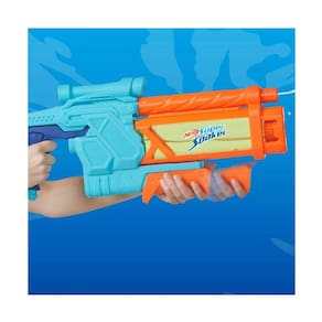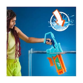 O lançador de água Nerf Super Soaker Mega Dunk-Fill tem um reservatório fácil de encher para que a diversão nunca pare. O design inovador do tanque ajuda na hora de recarregar de água. É fácil de encher. Basta mergulhar para encher instantaneamente de água! O reservatório transparente tem capacidade para 1000 ml de água. Basta mergulhar o tanque na água e correr para a aventura. Basta puxar o carregador para a frente e para trás para lançar água. O lançador tem uma mira de precisão. Os lançadores de água Nerf Super Soaker são uma excelente atividade de água ao ar livre para todos que gostam de brincar com água no quintal.