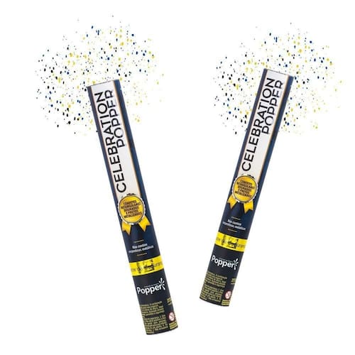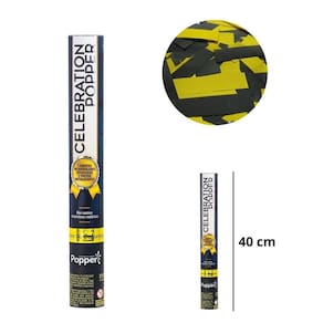 Lança Confetes Celebration com Confetes Retangulares Metalizados 40cm de comprimento - PopperO Lança Confetes Celebration da Popper é a garantia de uma chuva de elegância em suas celebrações. Com confetes retangulares dourados e pretos metalizados, este lança confetes adiciona um toque glamouroso a festas e eventos. Fácil de usar, basta girar a base para liberar os confetes que podem atingir entre 5 e 8 metros de altura, criando um momento de celebração inesquecível. Ideal para casamentos, formaturas, ou qualquer ocasião especial. Faça suas celebrações brilharem com o Lança Confetes Celebration da Popper e crie memórias douradas!
