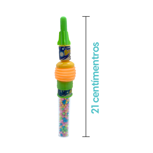 Prepare-se para uma aventura espacial com a Lança Foguete, o brinquedo que vai levar as crianças em uma viagem intergaláctica de diversão e sabor! Cada foguete está ligado à parte superior de um tubo repleto de deliciosas balinhas sabor Tutti Frutti, proporcionando uma experiência única e emocionante.