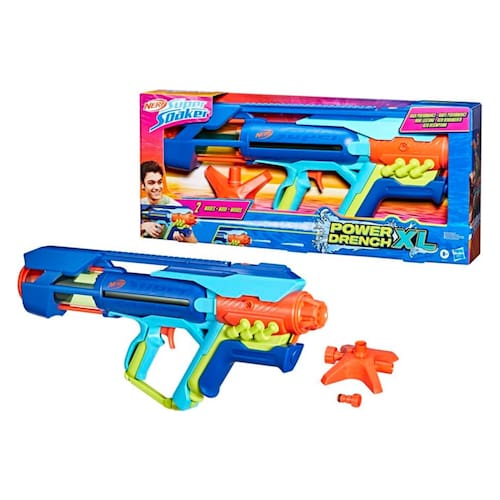 O lançador de água Nerf Super Soaker Power Drench possui excelente performance em batalhas aquáticas com laçamentos de alta pressão! Inclui tecnologia de fácil preenchimento do taque que adiciona pressão automaticamente. Lançador de alta performance que vai molhar todo mundo nas brincadeiras no quintal. Basta encaixar a mangueira na base de preenchimento e colocar o lançador na base para enchê-lo e inserir pressão. Requer mangueira, não incluída. Vem com adaptador para a mangueira. Pressão mínima da água: 27 psi Os lançadores de água Nerf Super Soaker são uma excelente atividade de água ao ar livre para todos que gostam de brincar com água no quintal.