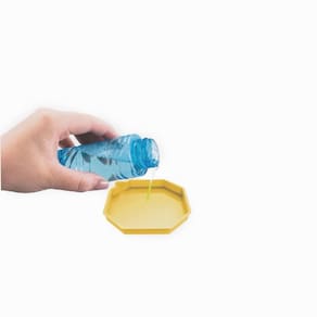 Basta despejar o liquido no recipiente, mergulhar o lançador e apertar o gatilho