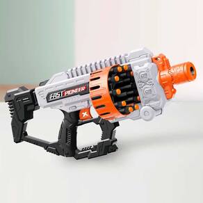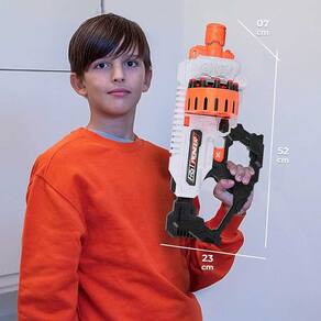 Lançador de Dardos - Fast Pionner Electric - Gatling - Zippy Toys: experimente a diversão de lançamento rápido com Fast Pioneer Electric! Este lançador de dardos de espuma foi projetado para disputas cheias de ação. Com 36 dardos inclusos e um tambor giratório com capacidade para 20 dardos, este lançador oferece emoção sem parar. Os dardos de espuma proporcionam uma experiência segura, tornando-a adequada para crianças a partir de 06 anos. Detalhes: • Lançador soft de dardos elétrico com tambor giratório duplo • Prepare-se para aventuras emocionantes intensas com este lançador elétrico de alto desempenho • Lançador semi-automático: este modelo possui um botão interruptor para ativar o tambor giratório. Quando o interruptor está ativado, basta apertar o botão, para lançar dardos em alta velocidade. • Alta capacidade: tambor de armazenamento com alta capacidade para 20 dardos. Este é um lançador de dardos que pode ser manuseado com uma mão. O design do tambor giratório duplo permite carregar até 20 dardos. • Acompanha 36 dardos de espuma para disputas prolongadas • Dardos macios: produzidos com espuma macia, que garantem uma brincadeira segura sem causar danos ou ferimentos • Recarga fácil e rápida: tambor de recarga rápida durante disputas intensas • Desempenho poderoso: lança dardos a velocidades impressionantes para uma brincadeira emocionante (alcance aproximado: 15 a 20 m) • Alcance ajustável: permite que você controle a distância e a intensidade de cada lançamento • Design ergonômico: pegada confortável e controle fácil de utilizar para maior Informações: • Produto: Lançador Elétrico Infantil Rotativo 20 Lançamentos • Marca: Zippy Toys • Coleção: Fast Pionner Eletric • Tipo: Lançador de Dardos • Categoria: Lançadores Infantis • Tamanho (C x A x L): 52 x 23 x 07 cm • Capacidade de lançamento: 20 dardos • Alcance aproximado de lançamento: 15 a 20 m • Conteúdo: - 01 Lançador de Dardos - 36 Dardos • Recomendação: para crianças a partir de 06 anos de idade Especificações: • Modelo: BIG503 • Referência: 10318 - LD24190 • Código de barras: 7908216133211 • Embalagem (C x A x L): 69 x 35 x 6.5 cm • Embalagem (Peso): 1.257 kg • Material / Composição: - Lançador: Plástico ABS - Dardos: Espuma • Funcionamento: 06 pilhas AA 1.5V • Registro: 0088721/2024 • Certificado: Órgãos Autorizados - OCP´S (Organismos de Certificação de Produtos) Aviso: • As imagens são meramente ilustrativas • Os pesos, tamanhos e medidas são aproximados • As cores e estampas dos produtos podem ter variações • As informações são de responsabilidade do fabricante ou fornecedor