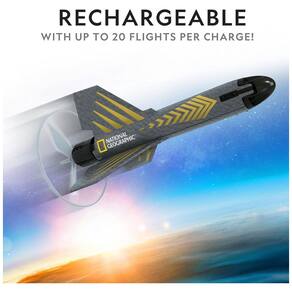 LEVE A DIVERSÃO AO AR LIVRE A NOVAS ALTURAS Nosso brinquedo foguete recarregável, motorizado e com patente pendente sobe até 200 pés com até 20 vôos com uma única carga. 3 CONFIGURAÇÕES DE VOO Lance seu foguete a 3 alturas diferentes com um simples toque de um botão. Seu foguete voará por mais tempo ou mais curto dependendo do modo selecionado, alcançando mais altitude quanto mais tempo ele voar FÁCIL DE VOAR COM POUSO O design inovador inclui pás de rotor semelhantes a helicópteros que se estendem e devolvem com segurança seu foguete motorizado ao solo. TUDO O QUE VOCÊ PRECISA PARA LANÇAR Este emocionante brinquedo infantil ao ar livre inclui plataforma de lançamento, cabo de carregamento e decalques para crianças para dar uma aparência personalizada ao seu foguete elétrico. BRINQUEDOS EDUCACIONAIS DE ALTA QUALIDADE A National Geographic tem o orgulho de fabricar brinquedos científicos práticos da mais alta qualidade, e todos os nossos produtos são apoiados por um serviço excepcional Marca: Não Informado