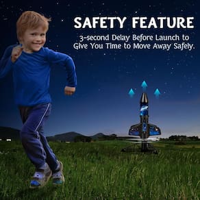 - 🚀 Dois modos de voo emocionantes: este lançador de foguetes oferece dois modos de voo! Pressione o botão de lançamento uma vez e o foguete sobe até 100 pés. Pressione duas vezes e chegará a impressionantes 200 pés! Um brinquedo ao ar livre perfeito para espaços abertos como quintais, parques e praias, ele permite que as crianças escolham sua própria aventura nas alturas.