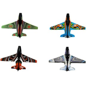Ele atira 4 aviões, é só prender na haste e lançar, você fara altas manobras radicais, junto com seus amigos, a diversão nunca irá acabar, porque sempre dá para prender os aviões novamente e recomeçar a brincadeira.
