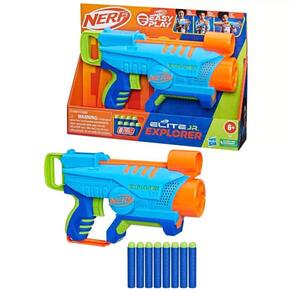 Lançador Nerf Elite Jr para meninos e meninas possui um design fácil de brincar para que as crianças se divirtam em aventuras dentro e fora de casa. Inclui 8 dados de espuma Nerf Elite e mira grande.