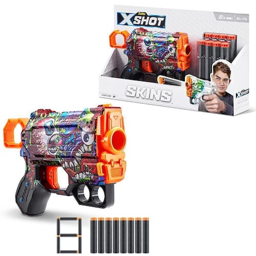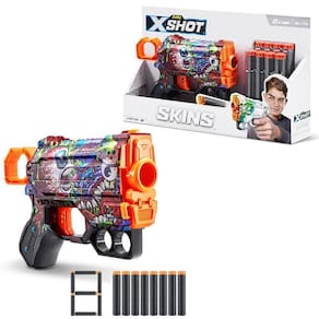 O Lançador X-Shot Skins Menace tem potência suficiente para enfrentar alvos a 27m de distância Fácil de recarregar, vem com armazenamento de dardo inferior para uma recarga rápida no meio da batalha. O lançador X-Shot Skins Menace vem em 7 skins com estampas exclusivas e de alta qualidade para selecionar e colecionar e vem com 8 dardos de espuma. O lançador é compatível com os principais dardos do mercado. A brincadeira será muito mais divertida com o X-Shot Menace Skins