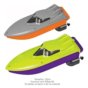 funciona na agua de piscina e lago com aguas calmas Funciona 03 Pilhas AA não inclusas Controle funciona com 02 pilhas AA (não inclusa) Tamanho: 25cm Largura: 9cm Altura: 9cm Velocidade média: 20kmh Controlador de velocidade em escala real hélices de alto toques Contem na caixa: 01 barco 01 controle remoto Alcance em media 15 a 20 metros de distancia no controle total, podendo ir mais longe. Idade: 6+ Selo Inmetro: CE-BRIocp00190 Garantia contra defeitos de fabricação 90 dias Envio com procedência garantida Envio em menos de 24 horas.