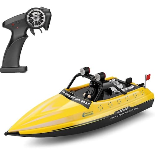 Função: Avançar, recuar, virar à esquerda e virar à direita, luz de navegação, indicador de bateria fraca, 16 km/h, curso de jato de água