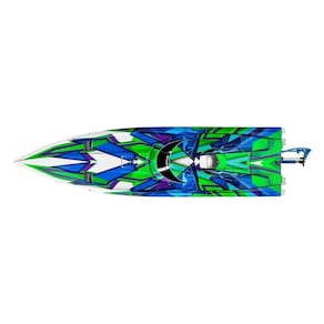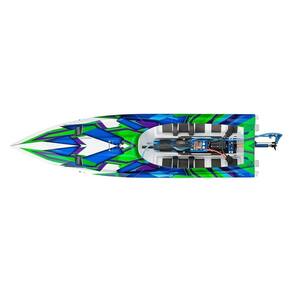 MODELO 57076-4: Totalmente montado, pronto para correr®, sistema de rádio TQi™ 2,4 GHz, Traxxas Stability Management®, motor sem escovas Velineon® 540XL, ESC marítimo VXL-6s e gráficos aplicados de fábrica.