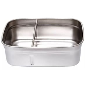 Possui um compartimento interno de aço inoxidável com divisória ajustável para separar os alimentos.