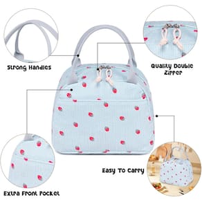 Bluboon Lancheira para mulheres e homens, fofa, de veludo cotelê, lancheira, reutilizável, com isolamento térmico, grande capacidade, refrigerador isolado para trabalho, piquenique ou viagens